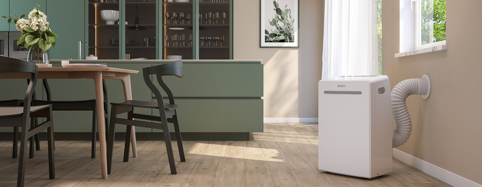 Dolceclima Aira 12 [S NW] es el climatizador portátil diseñado en Italia que combina 12 000 BTU/h de potencia con un diseño limpio y minimalista.