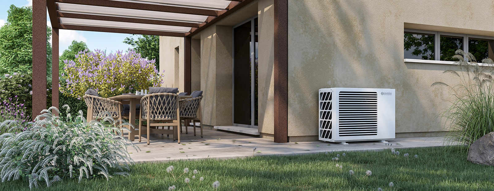 La bomba de calor aire-agua de Olimpia Splendid, con refrigerante R-290, permite proporcionar un confort climático eficiente y con un GWP cercano a cero, además de producir ACS hasta 70 °C sin resistencias eléctricas adicionales. Permite conectar hasta 8 unidades (del mismo tamaño) para componer una instalación con una potencia de hasta 120 kW, con un tamaño reducido, gracias al diseño compacto de las unidades individuales de un solo ventilador.